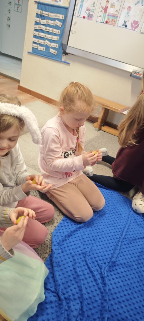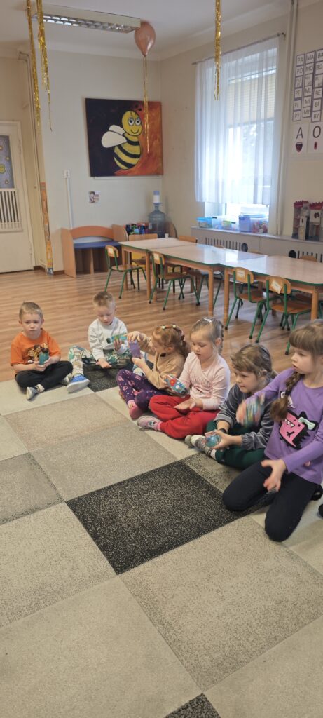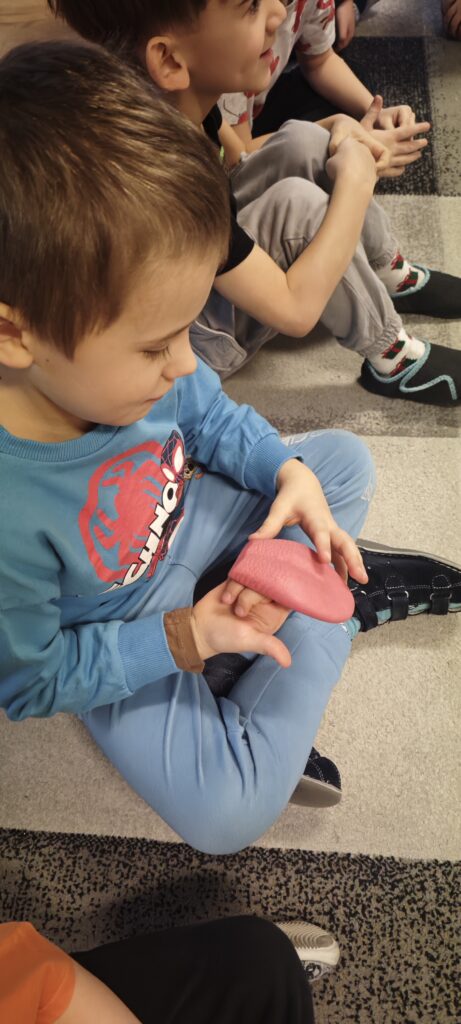 Podczas różnych zabaw i doświadczeń dzieciaki rozpoznawały zapachy, odgłosy oraz przedmioty o różnej konsystencji.