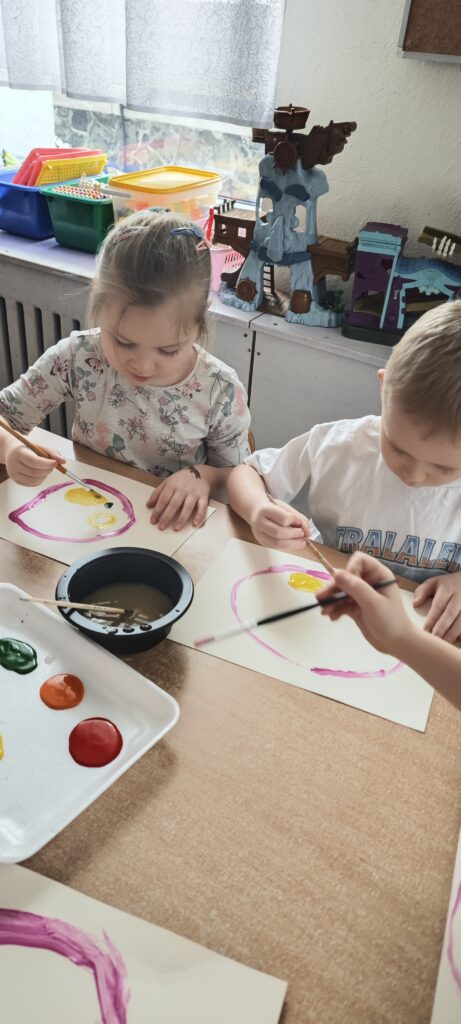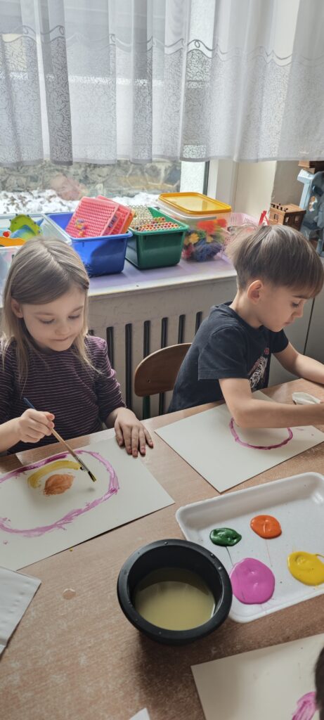 Malarz to artysta, który tworzy m.in. obrazy. Nasze Pszczółki wcieliły się w rolę malarzy i z wielkim zaangażowaniem malowały martwą naturę rozwijając wyobraźnię i wrażliwość artystyczną.